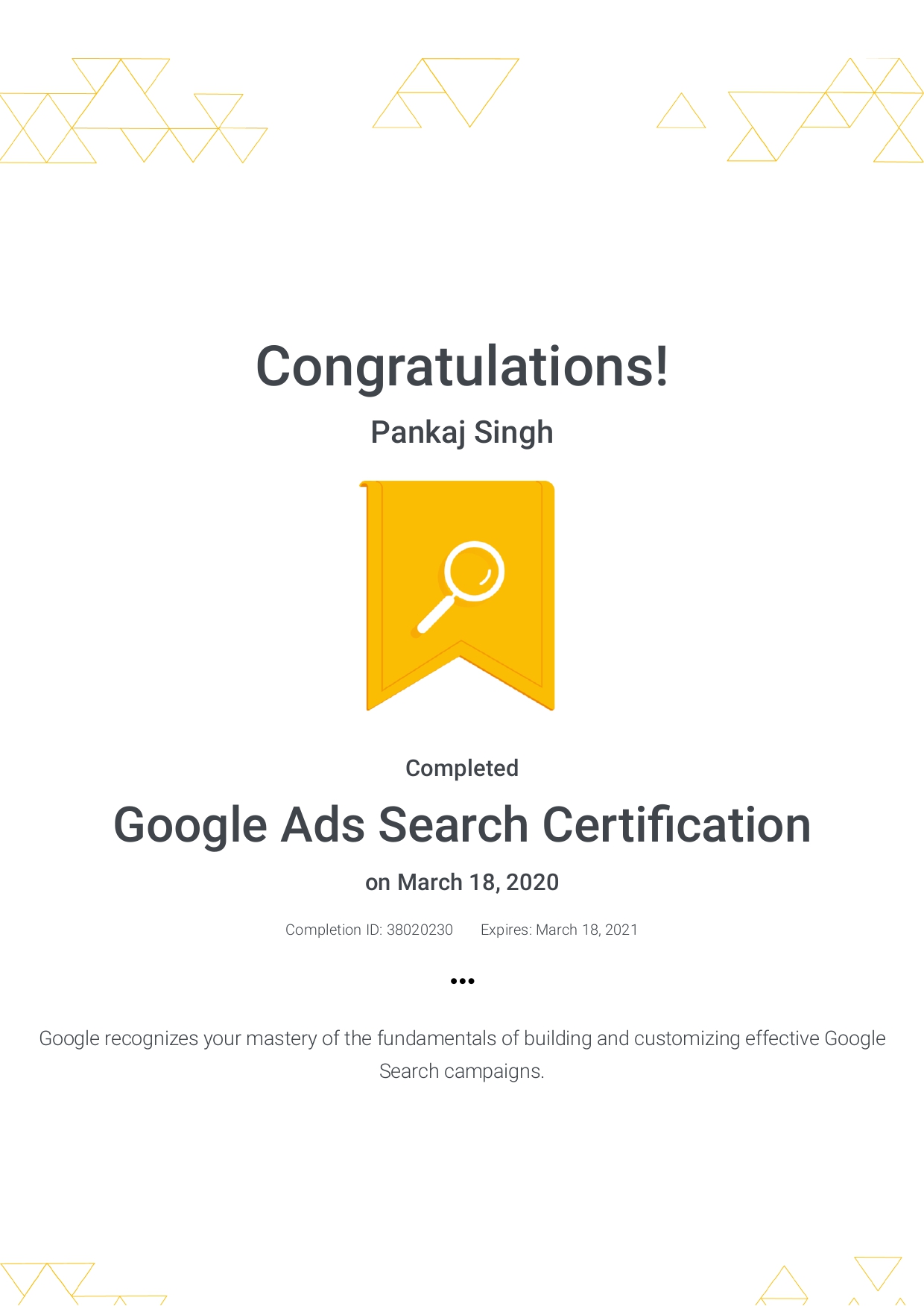 My latest Certifications